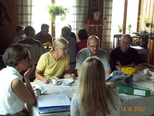 Keski-Suomen kulttuuriympäristöryhmä PutkilahdessaPutkilahti sai arvovaltaisen, ympäristöhoidon ympärille kokoontuneen joukon vieraakseen Könnön tilalle elokuun puolivälissä. Maakunnallinen kulttuuriympäristöryhmä kokoontui Putkilahdessa puheenjohtajansa Päivi Halisen johdolla. Mukana ryhmässä olivat Pirjo Hokkanen, Ritva Schiestl ja Taina Törmikoski ympäristökeskuksesta, Martti Salminen Keski-Suomen liitosta, Veli Koski TE-keskuksesta, Risto Koskinen Keski-Suomen museolta, Silja Suominen ympäristöministeriöstä, Heikki Hanka Jyväskylän yliopistolta ja Pekka Ilen Keski-Suomen maaseutukeskuksesta. Putkilahden kyläseura oli kutsuttu paikalle keskustelemaan kyläkaava-asioista ja samalla kommentoimaan maisemanhoidon asioita niin Putkilahdessa kuin yleisesti maaseudulla.