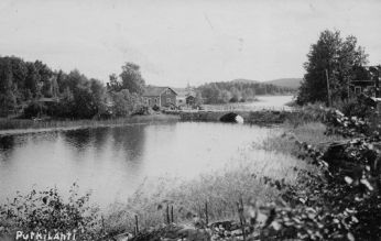 Virtasalmen silta kuvattuna Ylisjärven suunnalta. Sillan vasemmassa päädyssä näkyy Hovisen kaupan makasiini ja taempana kaupan sauna. Uusi silta korvasi vanhan sillan vuonna 1967. (Pentti Lahnamäen kokoelmat) [Julkaistu Putkilahden kylälehdessä 1/tammikuu 2010] |
